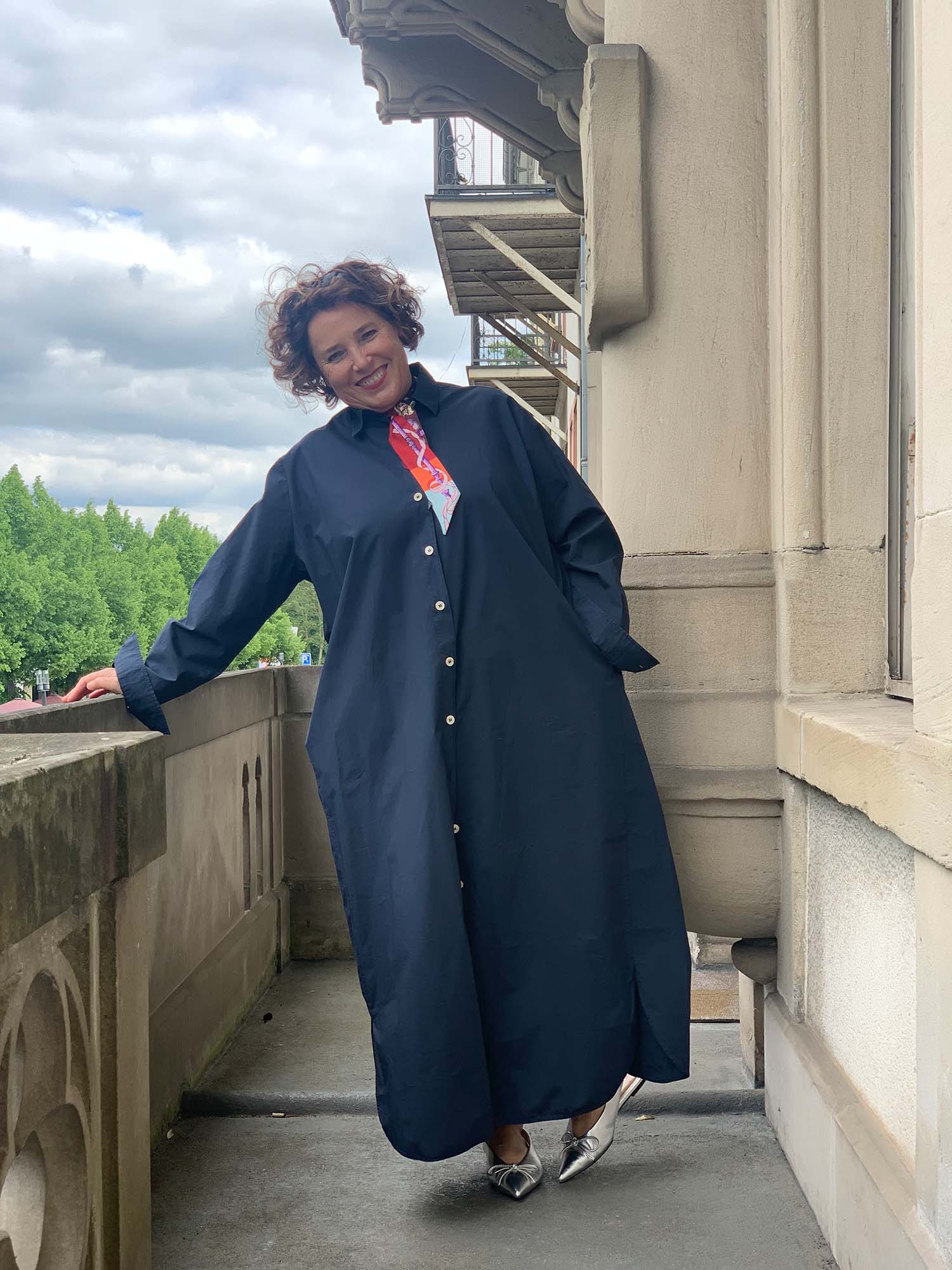 Academia: Cooles Hemnblusenkleid in bordeaux, durchgeknöpft, seitl. Taschen, leichte A-Form, Kellerfalte am Rücken. Material: 100% Baumwolle.