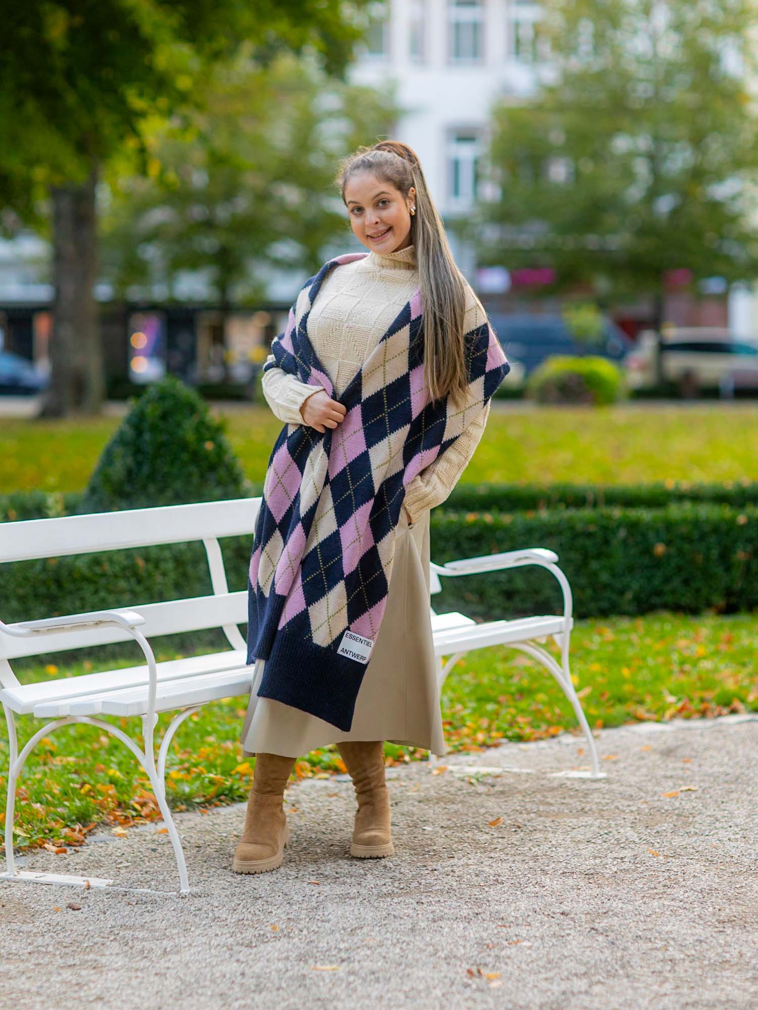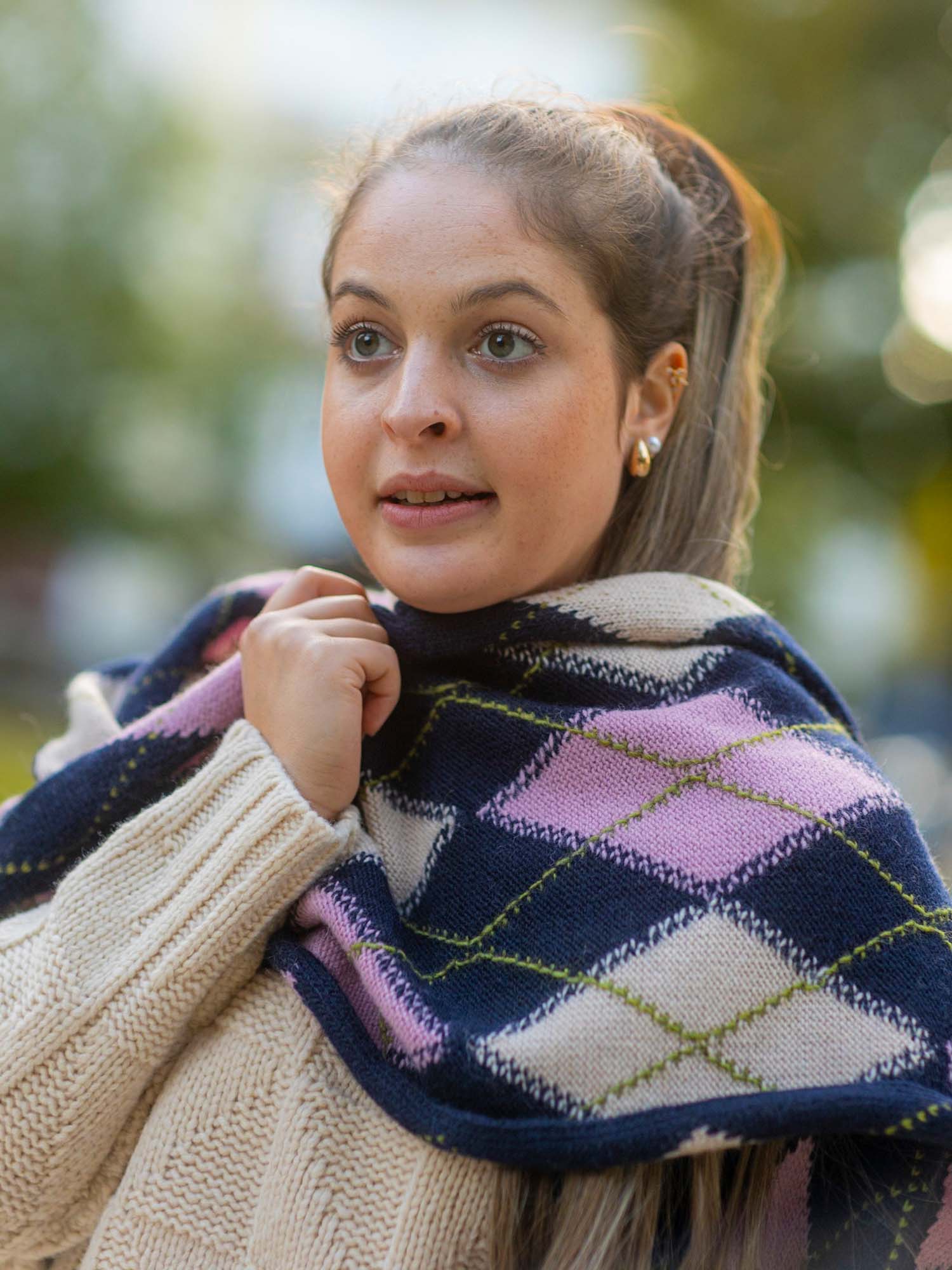 Essentiel Antwerp: Der große Jacquard-Schal ist mit einem auffälligen Argyle-Motiv versehen. Er ist aus einer warmen Wollmischung, die 10% Alpaka enthält, gefertigt, ist weich und hat eine tolle Struktur, während die gerippten Abschlüsse und das dezente Logoetikett ein raffiniertes Finish verleihen. Mit einer Größe von 250 cm x 41 cm, lässt er sich leicht umwickeln und drapieren und schafft Volumen und Wirkung. Wollmischgewebe, Mittelschwerer Strick, 250 x 41 cm, Gerippte Bündchen, Made in Italy, Navy/Rosa/Hellrosa. Material: 50% Wolle;40% Acryl;10% Angora.